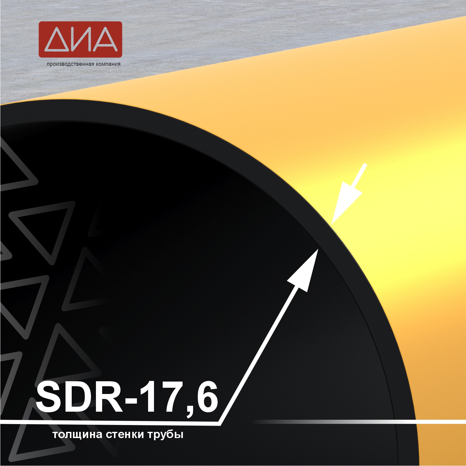 Технические условия» (с Поправкой, с Изменениями N 1, 2).соответствует классу ПЭ100-RC;ПЭ100. ПНД трубы для водоснабжения обладают долгим сроком службы, стойкостью к химическому воздействию и коррозии. Гарантия от производителя 2 года со дня изготовления. Низкая стоимость, быстрое производство и монтаж, отсутствие токсичных материалов в трубах делают их популярным строительным материалом в сфере водоснабжения. Труба ПНД ПраймЛэй SDR-17.6 с диаметром d-500 мм мм и толщиной стенки 28.4 мм имеет номинальное (условное) давление 9.5 атм.
